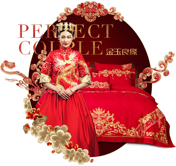 維科家紡以植物花卉為靈感,創造出一種更為接近大自然的設計,讓忙碌于都市生活的心靈獲得些許安寧。婚慶系列產品運用純正的中國紅搭配刺繡工藝,滿載喜慶的同時呈現出美好的祝福,營造出專屬于新人的浪漫天地。